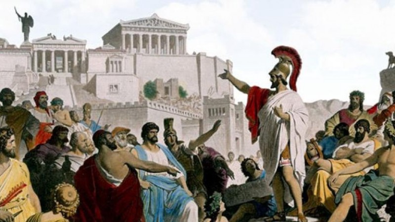 Фемистокл бол нийтийн тооллын өмнөх 524 онд мэндэлсэн Афиний улстөрч, цэргийн гарамгай жанжин юм. Яг хэдэн онд гэдэг нь хэдий тодорхойгүй ч тэрээр Афиний хуралдайг хэд дахин хуралдуулсны дүнд нутаг нэгтнүүдээ болзошгүй дайнд бэлдэх ёстой, тэгэхийн тулд 200 хөлөг онгоц барих хэрэгтэй хэмээн ятгаж, сэнхрүүлж дөнгөжээ. Фемистокл мөн афинчуудыг "модон хана"-ны ачаар аврагдана гэж зөгнөсөн гэх баримт ч бий. Персийн хаан Ксерксийг Грек рүү халдах үед түүний зөгнөл биеллээ олсон юм. Персийн асар том армийг эрэлхэг зоригтой спартачууд Фермопилийн тулалдаанд хэсэг зуур зогсоож, торгоосон ч шийдвэрлэх тулалдаан тэнгист болсон нь Саламисын тулалдаан билээ. Афинчууд мөнөөх 200 хөлөг онгоцныхоо ачаар Саламист ялалт байгуулснаар персүүдийг ухарч буцахад хүргэжээ. Хэрэв персүүд Грекийн хот-улсуудын нэгдлийг хүчлэн дарсан бол өрнө дахины түүх, ардчиллын түүх, цаашлаад өнөөгийн дэлхий дахины түүх огт өөрөөр эргэх байлаа. Тиймээс ч Фемистоклын санаачлан хуралдуулсан Афиний их хуралдай түүхэн дэх хамгийн чухал уулзалтын нэг болон түүхэнд үлджээ.