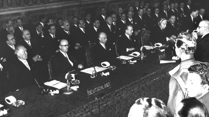 Өдгөө Европын холбоо эдийн засгийн цар хүрээгээрээ АНУ-ын дараа, хүн амынхаа тоогоор Энэтхэг, Хятадын дараа бичигдэж байгаа. Орчин цагийн бидэнд Европ тив цаг үргэлж л ийм нэгдмэл, эв түнжинтэй байсан шиг санагдаж магад. Гэтэл тийм байгаагүйг мянга гаруй жилийн түүх, сая сая хүний үхэл хагацал гэрчилнэ. Энэ бүхэн Европын холбооны суурь тавигдсанаар өөрчлөгдсөн бөгөөд тэрхүү суурь нь 1957 онд Ром хотноо болсон Европын орнуудын дунд эдийн засгийн түншлэл үүсгэх хуралдаан юм. Ромын гэрээнд Франц, Баруун Герман, Бельги, Итали, Нидерланд, Люксембургийн албаныхан гарын үсэг зурж Европын эдийн засгийн хороог байгуулсан нь хожмоо Европын холбоо болон өргөжин тэлжээ. Магадгүй Ромын гэрээг батлах хуралдаан шиг олон арван улсыг ойртуулсан улс төрийн яриа хэлэлцээ түүхэнд өөр байхгүй ч байж мэднэ.