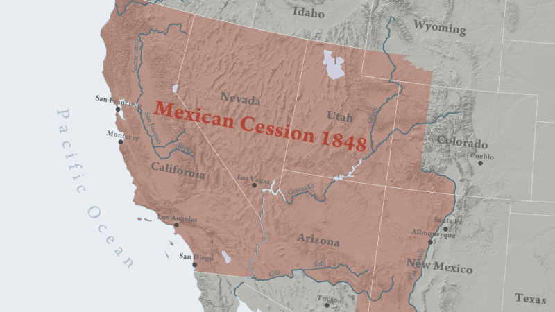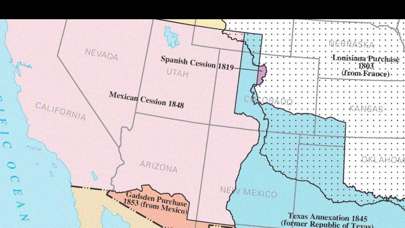 Байгуулагдаад удаагүй Мексик улс газар нутгийн маргаанаас болж төд удалгүй АНУ-тай бүр дайтах дээрээ туллаа. 1846-1848 оны хооронд үргэлжилсэн уг дайн үндсэндээ Америкийн тал Техасын нутгийг эзлэн түрэмгийлснээс үүдэлтэй юм. Гэхдээ америкчуудын гол санаархал нь Мексикийн баруун хагасын нутаг дэвсгэр буюу одоогийн Нэгдсэн Улсын Калифорни, Невада, Юта, Аризона мужийн нутаг дэвсгэрийг бүхэлд нь, нэмээд Нью Мексико, Колорадо, Вайоминг мужийн зарим хэсгийг багтаасан өргөн уудам нутгийг эзэлж авах байв. Тэр ч ёсоор болж, дайны ялагчийн хувиар Америк улс Техасаас гадна дээрх асар том газрыг 1848 оны хоёрдугаар сарын 2-нд үзэглэсэн Гуадалупе-Идальгогийн гэрээгээр газар нутагтаа нэгтгэж авчээ. Тэгэхдээ мексикчүүдийг гар хоосон үлдээсэнгүй, дайны нөхөн төлбөр нэрээр 15 сая ам.доллар буюу одоогийн ханшаар 500 сая орчим ам.доллар төлсөн байна. Мексикийн шилжүүлэг нэрээр түүхэнд үлдсэн энэхүү булаан эзлэлт/газрын наймаагаар Мексик улс нутаг дэвсгэрийнхээ 55 хувийг алдсан бол мөнөөх газар нь өдгөө Америкийн газар нутгийн 15 хувийг бүрдүүлж байна.