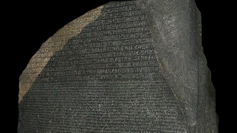 Хүн төрөлхтний бичиг соёлын ололт, гайхамшгийг илтгэх өөр нэгэн бичгийн сурвалж бол нийтийн тооллын өмнөх 196 онд бүтээгдсэн Розеттын чулуу юм. Дээр нь эртний египет болон эртний грек гэсэн хоёр хэл; демотик болон дүрс үсэг, мөн эртний грек бичиг гэсэн гурван бичгээр Египетийн хаан Птолемей V Эпифаны нэгэн зарлигийг сийлсэн уг чулууг Напеолоны байлдан дагууллын үеэр Францын армийн офицер Пьер-Франсуа Бушар гэдэг хүн эртний Мемфис хотын тууриас 1799 оны долдугаар сард олжээ. Олдсон газрынхаа нэрээр (арабаар Эль-Рашид) нэрлэгдсэн Розеттын чулуу нь орчин цагт олдсон эртний Египетийн үед хамаарах хамгийн анхны олон хэлээрх бичгийн сурвалж юм. 1799 оноос хойш өөр олон төстэй олдвор олдсон ч Египетийн соёл иргэншлийг тайлж унших гол түлхүүр болсны хувьд энэхүү нээлтийг бүх цаг үеийн археологийн хамгийн онцгой, ховор нандин олдворын нэг гэж үзсээр байна. Шинжлэх ухаанд өмнө нь тайлагдашгүй байсан нууцыг тайлах түлхүүр болох аливаа шинэ нээлтийг өдгөө Розеттын чулуу гэж нэрлэдэг хэлц хүртэл бий болжээ.