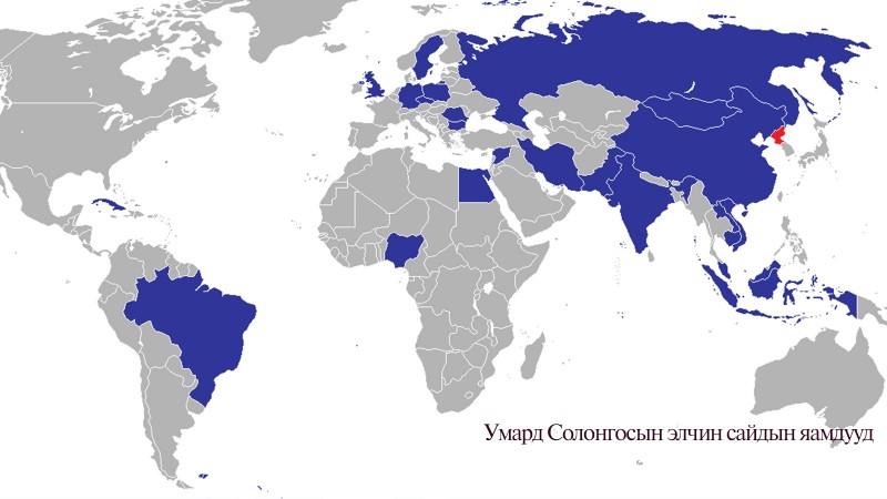 Бусад улсуудтай адил Умард Солонгос дипломат корпустай ба хэд хэдэн улсад элчин сайдын яамдтай. Хэдийгээр Умард Солонгос бусад хөгжилтэй улсуудыг дууриахыг хичээдэг ч, тэдний ядуу тарчиг байдлыг нуух боломжгүй билээ.