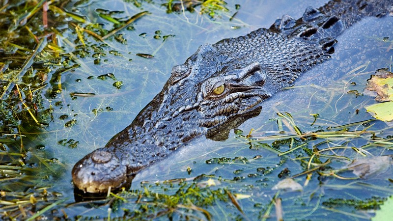 Австралийн хойд хэсэг, зүүн өмнөд азид амьдардаг энэ матар нь хамгийн том хэвлээр явагч юм. Нас биед хүрсэн энэ матар дунджаар 4.8-7 метр урт, 1.6 тонн хүртэлх жинтэй байдаг. Энэнээс ч том хэмжээтэй үзэгдсэн тухай баримт бий. Тэд усны одос үхрийн хэмжээтэй амьтдыг ч алж идэх чадвартай. Тэд хамгийн аюултай үхлийн дайралтаа хийхдээ хүн юмуу амьтныг амаараа зуугаад усанд "үхлийн эргүүлэг" хийн алдаг. Нэг тонн жинтэй амьтныг энэ үйлдлээрээ нэг минут ч хүрэхгүй хугацаанд алдаг байна. Энэ матар усан дотор дельфин шиг л хурдан хөдөлдөг юм.