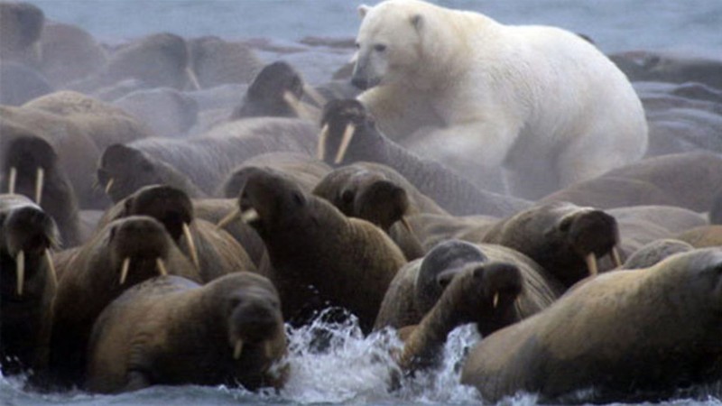 Умард туйлын энэ аварга биет амьтан ихэвчлэн далайн хаваар хооллодог ба хүний толгойг салтал алгадах чадалтай. Цагаан баавгай бусад төрлийн баавгайнуудаасаа хамгийн махчин нь ба далайн арслан, халим, цаа буга, шувуу, загас, тэр ч бүү бусад цагаан баавгайгаа ч иддэг.