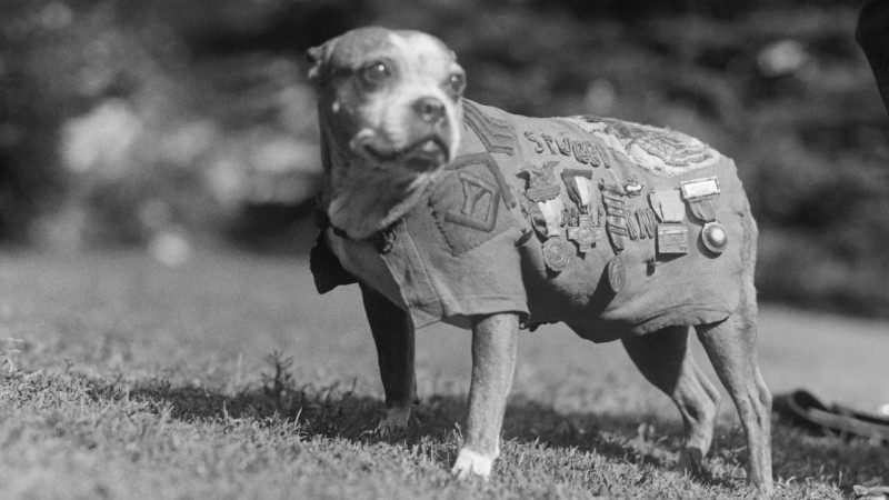 Дэлхийн I дайнд АНУ-ын Зэвсэгт хүчний их бууны 102 дугаар хорооны дэслэгч Роберт Конрогийн сургасан Стабби хэмээх нохой армид амьтан байлгаж болохгүй гэсэн тухайн үеийн журмыг зөрчсөн ганц амьтан байв. Ухаалаг, сэргэлэн, юу ч заасан хурдан сурдаг энэ нохой цэргүүдтэй зэрэгцэж зогсоод ёсолдог байсан гэдэг. Стабби фронтын шугаманд, ширүүн тулаанд хэд хэдэн удаа оролцохдоо хорт хийнд нэг бус удаа хорджээ. Эрүүл мэндэд нь үнэтэй туссан ч энэ нь ямар ч хорт хийг мэдрэх чадвартай болгож, хожим олон цэргийн амийг аврахад тусалсан байна. Гэхдээ хорт хий үнэрлээд ялгаж таньдаг болсон нь түүний байгуулсан өөр нэг түүхэн гавьяаны дэргэд бага юм. Стабби холбоотны хүчний байрлалыг тандах гэсэн герман тагнуулчийг барьсан нь дэлхийн I дайны үеийн онцлох үйл явдлын нэг гэгддэг. Дайн дуусахад Стабби 17 тулаанд оролцож, шархадсан 20-иод цэрэгт анхны тусламж хүргэхэд туслаад байв. 1921 онд АНУ-ын Засгийн газрын баатарлаг амьтны одонгоор шагнуулсан энэ түүхэн нохой 1926 он хүртэл амьдарчээ.