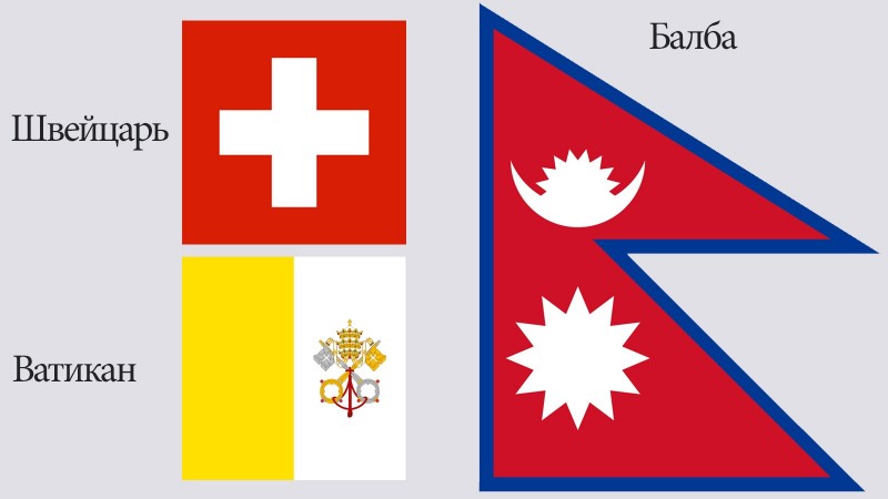 Бүх тусгаар орны далбаа мөн тэгш өнцөгт хэлбэртэй байхад Швейцарь, Ватиканы далбаа л тэг дөрвөлжин байдаг. Харин энэ дүрмийг бүр үндсээр нь зөрчдөг хамгийн содон хэлбэртэй далбаа бол Балба буюу Непалынх юм.
