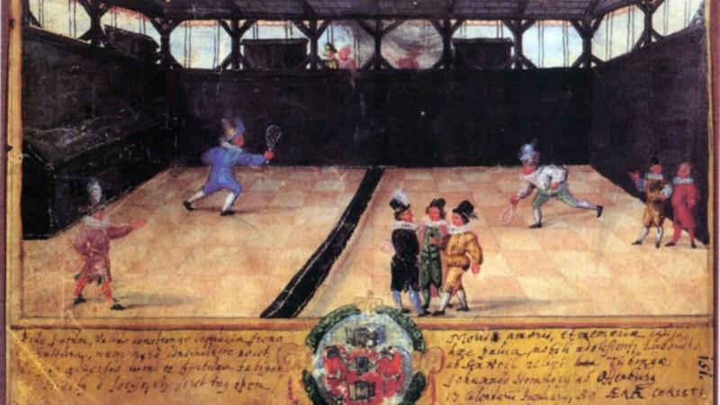 Эртний Египт, Грек, Ромчууд бүгд теннистэй төстэй тоглоом тоглож байсан тухай баримт байдаг. Гэсэн хэдий ч орчин үеийн теннисний үүсэл манай эриний 1000 оны орчмоос эхэлдэг. Тухайн үед Францын сүмд лам нар модон бөмбөгөөр гараараа харилцдаг байсан ба энэ нь воллейболтой илүү төстэй байв. Тэр үед тор ашигладаггүй олсоор орлуулдаг байсан байна. Лам нар бөмбөг давуулах үедээ францаар "аваарай" гэх утгатай "тенез" гэж хэлдэг байснаас теннис хэмээх нэр үүсчээ. Дараагийн 200 жилд теннис Европ тивээр маш хурдацтай тархаж 13-р зууны үед 1800 орчим теннисийн талбай байгуулагдсан байлаа. 1500 он гэхэд модон хүрээтэй хонины өлөн гэдсээр хийсэн цохиурыг олноор ашиглах болсон ба бөмбөгийг үйсээр хийдэг байв.