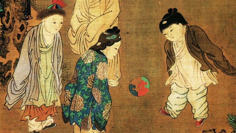 Манай эриний өмнөх 476-221 оны үед Хятадад хүмүүс кужу хэмээх тоглоомыг тоглодог байсан ба үүнийг орчуулбал "Хөлөөрөө бөмбөг өшиглөх" гэх утгатай байв. Тоглоомын дүрэм нь өдөөр дүүргэсэн арьсан бөмбөгийг хоёр шонд өлгөсөн даавуун доогуур оруулах байсан бөгөөд ингэх үедээ гарнаас бусад биеийнхээ бүх хэсгийг ашигладаг байв. Цэргүүд уг тоглоомыг бэлтгэлийн нэг хэсэг болгон тоглож байсан тухай баримт байдаг.