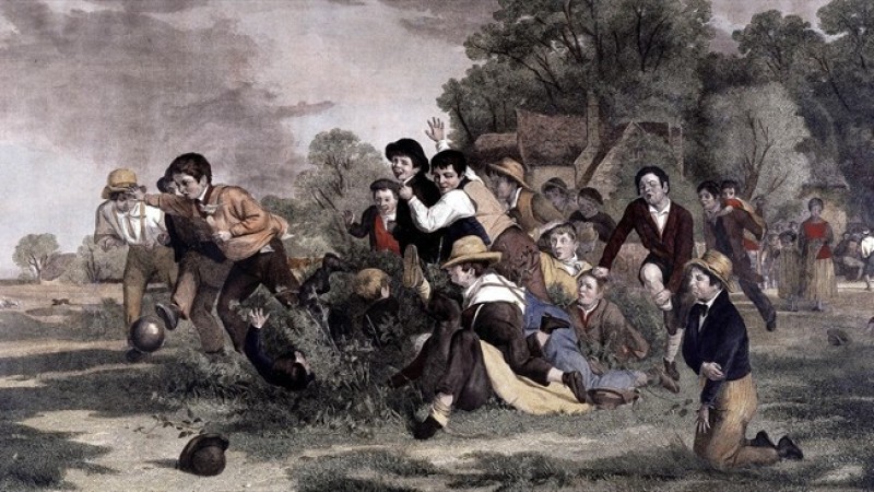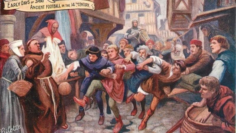Эртний Ромчууд мөн хөлбөмбөгтэй төстэй тоглоомыг тоглодог байсан. Баг бүр 27 тоглогчтой, бөмбөгийг эсрэг талын хаалганд оруулах дүрэмтэй байв. Гэвч Эртний Ромчуудын тоглоом байсан учир тоглолтын явцад хүмүүс гэмтэх, цаашлаад үхэх ч тохиолдол гардаг байсан байна.
