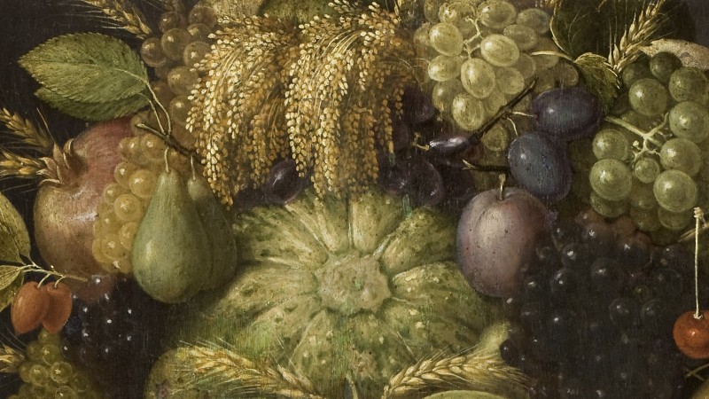 Энэ зургийн деталиуд зүгээр л цэцэг жимс шиг бодит харагдана. Гэтэл ерөнхийд нь ажиглаж харваас Унгар-Хорватын эзэн хаан хоёрдугаар Рудолфын дүр ч юм шиг, эсвэл тариаланчдын тахидаг байсан өөр дүрд хувирах шидтэй, латин бурхан