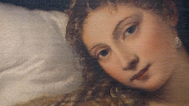 Баруун гартаа цэцэг атгасан дагинын цаахан талд хэвтэх нохой, хувцас сэлтийг нь янзалж буй бололтой хоёр шивэгчин, тэдний байх элдэв чимэглэлгүй өрөө гээд энэ зураг магад зарим судлаачдын бичдэгээр жирийн амьдралд хамгийн ихээр ойртож ирсэн Венера дагиныг харуулжээ. Гэвч Венераг зурсан өөр бусад зургуудыг бодвол энэ зурагт буй дурлалын бурхан үзэгчийн анхаарлыг эрхгүй татах онцгой ховсч нүдтэй билээ.