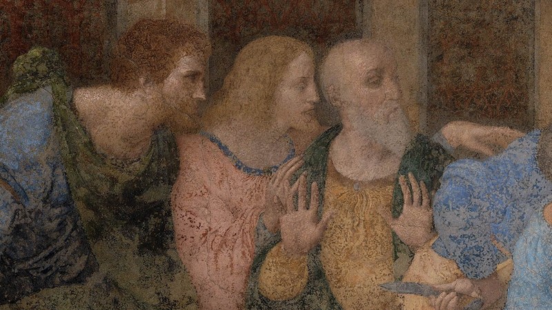 Цовдлуулахынхаа өмнөхөн Есүс арван хоёр дагагчын хамт оройн зоог барьж сууна. Да Винчийн сонгож дүрсэлсэн яг энэ мөч бол энэ оройн хамгийн түгшүүртэй үе юм. “Тун удахгүй та нарын нэг нь намайг хуурах нь” гэж ширээний голд суугаа Есүс хэлнэ. Түүний үгийг сонссон дагагчдынх нь царай гайхширсан, уурласан, сандарсан байдалтай байна. Анзаарч харвал энэ зурагт гурван цонх харагдах ба Есүсийн итгэлт дагагчдыг Да Винчи гурав гурваар нь ойролцоо суулган дүрсэлжээ. Ингэснээр голд суугаа Есүс зургийг харж буй үзэгчийн анхаарлыг хамгийн түрүүнд татна. Харин урвагч бол Есүсийн баруун гар талд суусан ногоон, хөх өнгийн хувцастай Judas хэмээх дагагч нь юм. Тэрээр жижиг цүнх авч яваа нь тод харагдах ба урвасныхаа төлөөс болох мөнгөн гулдмайг авч яваагаар гардаг түүхийг нь санагдуулна. Бас тэрээр зурагт буй бүх л хүмүүсээс хамгийн доод шугаманд харагдаж байна.