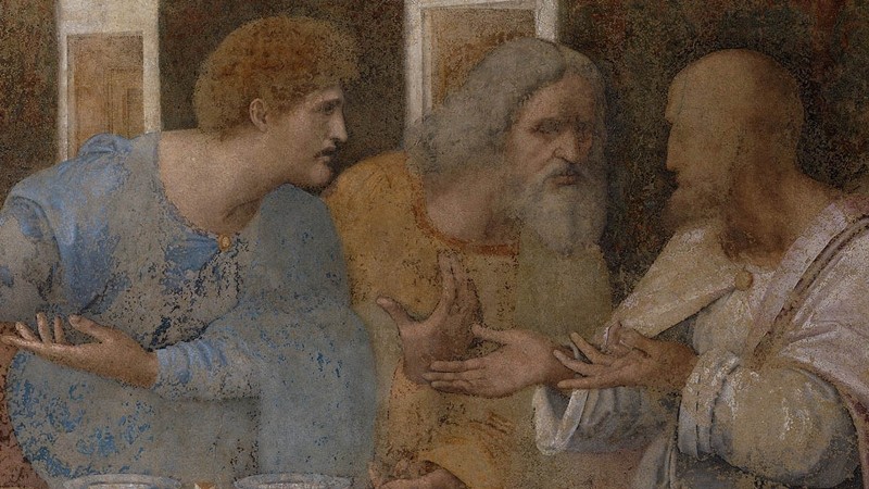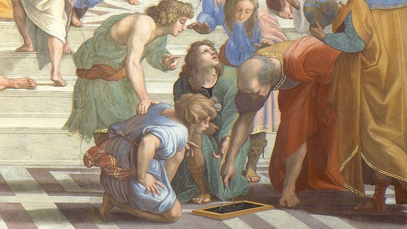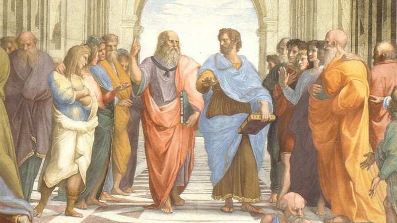 Өөр өөр цаг үед амьдарч байсан философич, математикч, агуу сэтгэгчдийг зураач нэг дээвэр дор дүрсэлсэн нь бас их сонирхолтой. Өрнийн сэтгэлгээний суурийг тавьсан гэгддэг Платон, Аристотель нарыг хамтад нь харуулсан боловч нэг нь гараа дээш зангасан, нөгөө нь доош харуулсан байдлаар тэдний үзэл санааны ялгаатай байдлыг илтгэжээ.