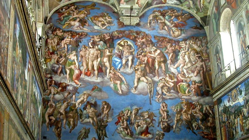 Гэхдээ л энэ дуганыг хамгийн ихээр алдаршуулсан зүйл бол Микеланжелогийн бүтээл юм. Таазан дээрх есөн хэсэг үзэгдэл бүхий зургуудын нэгт хүн бүрийн мэддэг “Адамыг бүтээсэн нь” хэмээх зураг орно. Харин ханан дээр нь 13.7х12 метрийн хэмжээтэй энэ зураг бий.