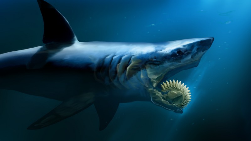 Шинэ шүд ургахад хуучин шүд нь амнаас нь ил гарч, доош унжин мушгиралдсаар биеийнх нь доод хэсэгт бөөгнөрдөг байсан, аймшигт төрхтэй Helicoprion-ийн биеийн хэмжээ 3-4.5 метр байж. Хурц шүд, том сэрвээтэй уг амьтныг зарим судлаач орчин цагийн аварга махчин загасны дээд өвөг гэж үздэг. Гэвч энэ таамаг өнөө ч маргаантай байна.
