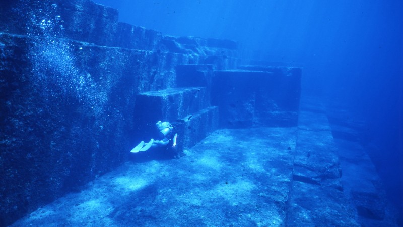 Японы Рюүкюүгийн бүлэг арлын өмнөд захад орших Ёонагүнигийн пирамидуудыг хүний гараар бүтсэн эсэхийг судлаачид өнөө ч эцэслэн тогтоогоогүй байна. Эл хачирхалтай байгууламжийг алхан толгойт аварга загас хайж яваад шумбагчид 1987 онд илрүүлжээ. Шаталж зассан чулуу, тэгш өнцөгт тайзархуу тавцан зэргийг нь харахад эл байгууламжийг байгаль эх бүтээсэн гэхэд итгэмгүй. Дал гаруй метр өндөр хана хэрэм бүхий уг байгууламж олон том чулуу давхарласан мэт бүтэцтэй ч аварга чулуунууд өөр хоорондоо холбоотой, өөрөөр хэлбэл нэгэн бүхэл том хадыг засаж янзалсан мэт ажээ. Гэтэл үүнийг хүн бүтээсэн хэмээж, чулуулгын насыг тооцоолбол сүүлчийн мөстлөгийн үед буюу МЭӨ 10000- аад онд бүтээсэн болж таарна. Тэр үед далайн түвшин одоогийнхоос 40 гаруй метрээр бага байсан нь үүнийг боломжтой мэт санагдуулах ч геологичдын олонх нь Ёонагүни-Жимагийн сац суваргуудыг далайн ёроолд болсон газар хөдлөлтөөс үүдэлтэй гэж үздэг.
