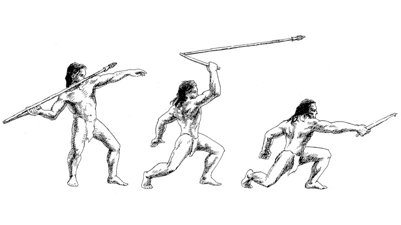 Хүн жад ашиглаж эхлэв. Одоогоор олдоод байгаа хамгийн эртний жад Германы Шёнинген хотын ойролцоогоос олджээ. Гэхдээ Сенегалд нутагладаг орчин цагийн бичний нэгэн бүл авд гарахдаа жад, саваа хэрэглэдэг нь тогтоогдсон бөгөөд энэ нь хүн багаж, зэвсэг бүтээх эрдмээ дээд өвөг нэгтэй хүн дүрст оюун ухаантнуудаас авсан гэх таамаг дэвшүүлэхэд хүргэж байна.