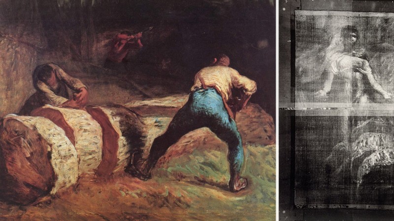 Жан-Франсуа Миллегийн “Мод хөрөөдөгчид” хэмээх энэхүү алдартай уран зургийг хэт улаан туяа ашиглан хартал хүний толгойны дүрс тодрон харагдсан байна. Цаашид нарийвчлан шинжилсээр уг зургийн доор нуугдсан байсан La Republique хэмээх Францын алдарт хөшөөний зургийг олжээ.
