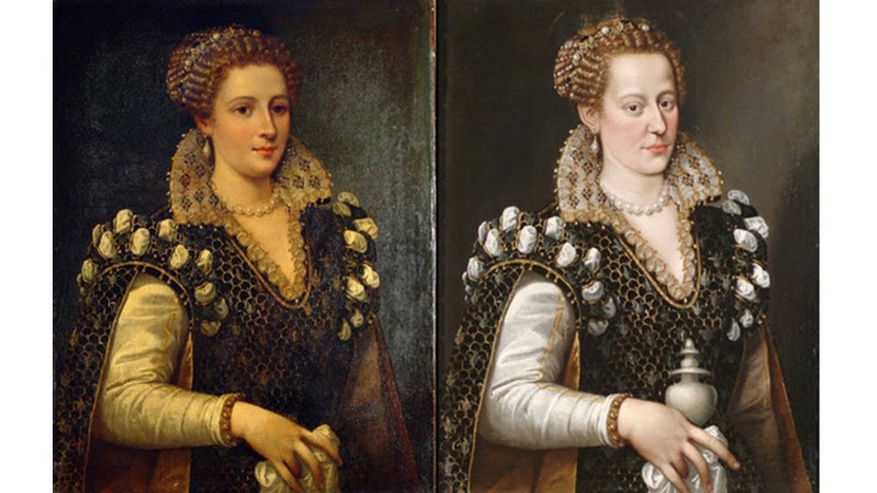 “Изабелла де’Косимо л де Медичи” хэмээх 16-р зуунд бүтээсэн Итали хатагтайн хөрөг зургийг дуураймал гэх хардлага төрсний дагуу Карнегийн музейн шинжээч нарийвчилсан шинжилгээ хийсэн байдаг. Шинжилгээний дагуу уг зураг нь жинхэнэ гэдэг нь тогтоогдсон бөгөөд нэгэн том нууц хадгалж байсан нь илэрчээ. Будгийн өнгөн давхарга хагарсан байсан бөгөөд түүний ард нь Медичи авхайн жинхэнэ царай нуугдаж байгааг олжээ. Хөрөг зурагт буй эмэгтэйг 19-р зуунд хамаагүй залуу, үзэсгэлэнтэй болгон зурсан байв. Жинхэнэ Медичи авхай том гартай, үрчлээтсэн царайтай байх бөгөөд дарж зурсан зураач хөрөг зургийг худалдаалахад илүү сайхан харагдуулахын тулд ийнхүү өөрчилсөн байх хэмээн таамаглаж байгаа юм байна.