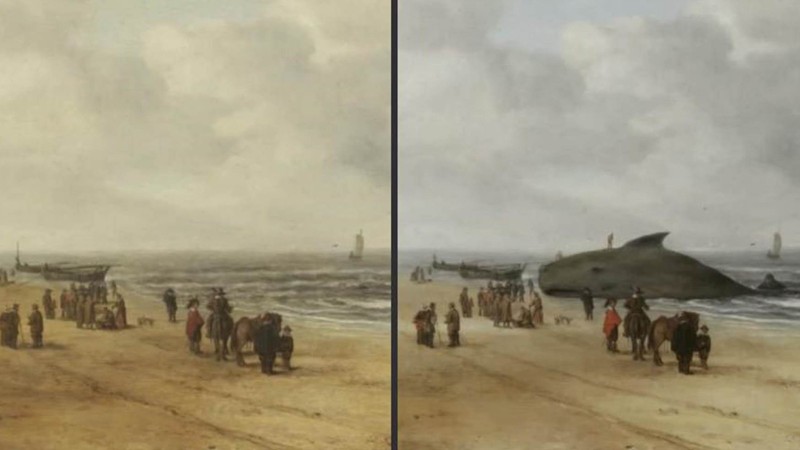 Зураач Хэндрик ван Антониссений 1641 онд бүтээсэн “View of Sheveningen Sands” зургийг 1873 онд Фицвиллиам музейд хандивласан байдаг. Энэхүү зураг дээр далайн эргийн өвлийн өнгө төрхийг харуулсан байх бөгөөд хэсэг бүлэг хүмүүс ямар нэг шалтгаангүйгээр зогсож байгаагаар дүрсэлжээ. Ямар нэг гайхалтай зүйлгүй мэт байсан уг зургийн шар өнгийн будгийг хуулах даалгаврыг нэгэн урлагийн оюутанд өгсөнөөр олон зуун жилийн турш хадгалсан нууцыг нь илрүүлсэн байдаг. Далайн хөвөөний ойролцоо будгийг арилгаж байтал усан онгоцны дарвуул гарч ирсэн байна. Цааш судалтал уг дарвуул нь үнэндээ халимны сэрвээ байсан бөгөөд төд удалгүй далайн эрэг дээр гарч ирсэн бүтэн халимны зураг тодорчээ. Музейд бэлэглэх үед уг зураг дээр халим байсан тухай ямар ч мэдээлэл байхгүй байв. Гэхдээ цаашдын шинжилгээний үр дүнд халимыг 18-19-р зууны үед дарсан болох нь тогтоогдсон байна. Шинжээчдийн үзэж буйгаар тухайн үед үхсэн амьтны зураг зохисгүй зүйл хэмээн үздэг байсантай холбоотойгоор халимын зургийг ийнхүү дарсан аж.