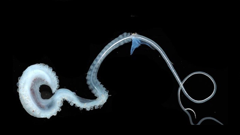 Наймаалжны бэлгийн амьдрал үнэхээр хачирхалтай. Өмнө нь дурсанчлан “долоон-гарт” наймаалжны эмэгчин нь 4 метр хүртэл урттай болдог бол эрэгчин нь хамгийн томдоо ердөө 30 см урт байдаг. Ихэнхи тохиолдолд ердөө 1 см урт байна. Энэ асар том зөрүүг арилгахын тулд уг наймаалж маш том хектокотилус (сперм дамжуулах гар)-тай болсон байданг. Энэ нь 2 см урт болдог. Мэдээж энэ нь тийм том санагдахгүй байж болох ч эрэгчин амьтны бие 1 см гэж бодохоор өөрийн биеэсээ 2 дахин том эрхтэнтэй гэж төсөөлөөд үзээрэй. “Хетокотилус” гэдэг үг нь “100 хөхөгчтэй өт” гэсэн утгатай ба 1829 онд Францын амьтан судлаач хүн үүнийг эмэгчин наймаалжны биеэс олоод шимэгч хорхой гэж бодсонтой холбогдуулан өгсөн нэр юм.