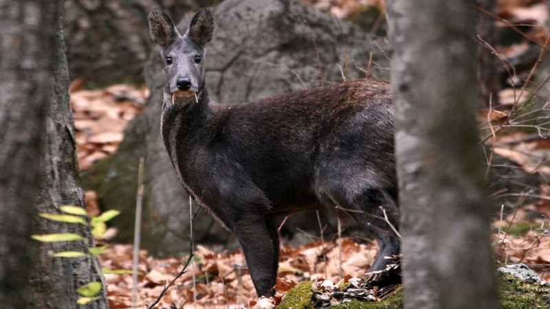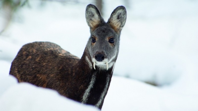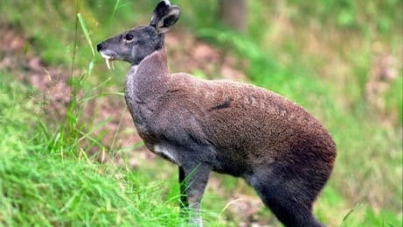 Хүдэр нь бугын овог, салаа туурайтны багт хамаарна. 6-7 төрлийн мал, амьтны шинж байдлыг агуулсан өвсөн тэжээлтэн. Хүрэн бор зүстэй, хондлой, зоо нуруу, биеийн хоёр талаар бүдэгхэн шар толбуудтай. Шанаандаа хоёр цагаан зураа бүхий сааралдуу толботой бөгөөд бусад ямар ч амьтанд байхгүй содон зүс юм. Урт нь 1 метр, өндөр нь 60 сантиметр, дээд уруулын доороос 7-10 сантиметр урт хоёр соёо цухуйсан байдаг. Хүдэр бүллэн амьдардаг бөгөөд өөр өөрсдийн эзэмшил газар нутагтай. Энгийн 40 гаруй зүйлийн ургамлаар хооллохоос гадна хуш модны хаг, ойн хөвд зэрэгт дуртай. Жилд нэг, заримдаа хоёр жилд нэг удаа төллөдөг.