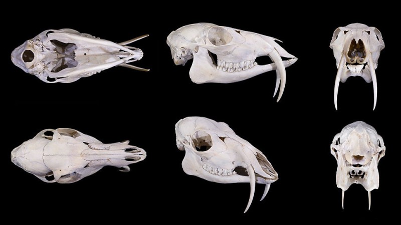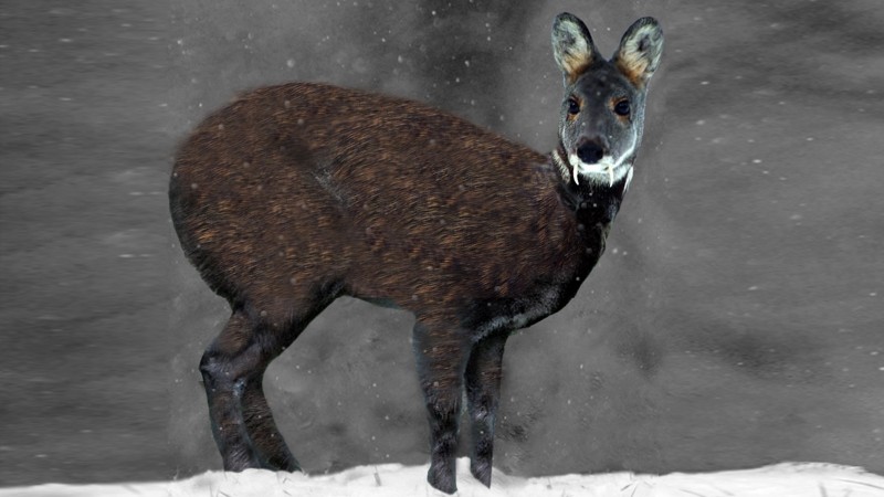 Гирээ (эр хүдэр), гирэгчин эвэргүй. Гирээ дээд уруул дороосоо илүү гарч эрүүнээс доош сөрдийсэн, 7 см хүртэл урт сэлэм хэлбэртэй, хурц, тод цагаан соёотой. Гирэгчний соёо жижиг. Хажуу, зоо хондлойгоороо бүдэг шаравтар толбо бүхий хүрэн бор, бараан хүрэн зүстэй. Хэвэл, мөчдийн дотор тал цайвар. Хондлой сэрвээнээсээ өндөр, урьд хөл хойд хөлөөс богино харагдана. Биеийн урт 93 см, сэрвээний өндөр 69 см, жин 14 кг хүрнэ.