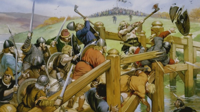 1066 онд Саксоны армитай хийсэн тулаанд тоогоор хол дутуу байсан Норсын дайчид ухарч байлаа. Сэтгэл зүйн хувьд ялагдал хүлээхэд ойрхон байсан викингчүүд араас мөшгих саксончуудын эсрэг дахин зогсохын тулд цугларахаар хичээж байв. Гэтэл нэгэн викинг дайчин гарч ирэх нь тэр. Зугтаж байсан нөхдийнхөө хажуугаар эргэн гүйж, гурван хүн нэвтрэх боломжтой гүүрэн дээр ганцаараа Саксоны армийн эсрэг зогссон байна. Түүний нэрийг хэн ч мэдэхгүй бөгөөд том биетэй, өргөн мөртэй, толгойдоо дуулгатай, цээжиндээ төмөр хуягтай, сүх барьсан дайчин байсан гэдэг. Гүүрний нэг талд викингүүд алдарт бамбайн ханаа босгож, харин дайчин эр ганцаараа гүүрэн дээр дайснуудаа хүлээн зогсов.