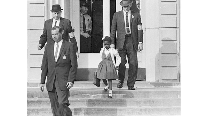 Зураг дээрх охин бол тус сургуулийн цорын ганц афро-америк гаралтай сурагч Рюби Брижис юм. АНУ-ын Хууль зүйн яамны хууль сахиулах албаныхан түүнд бараа болон харгалздаг байж.