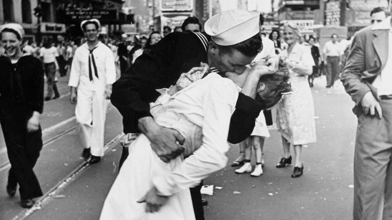 Гэрэл зурагчин Альфред Эйзенштадтын “Таймс Сквер дэх Японыг ялсны баяр” нэртэй энэ зураг маргаангүйгээр Дэлхийн II дайны үеийн хамгийн алдартай зургуудын нэг юм. 1945 оны наймдугаар сарын 14-нд Нью-Йорк хотод ялалтын баярын үеэр авсан уг зураг долоо хоногийн дараа LIFE сэтгүүлд хэвлэгдэж, нүд ирмэхийн зуур ихэдалдаршжээ.