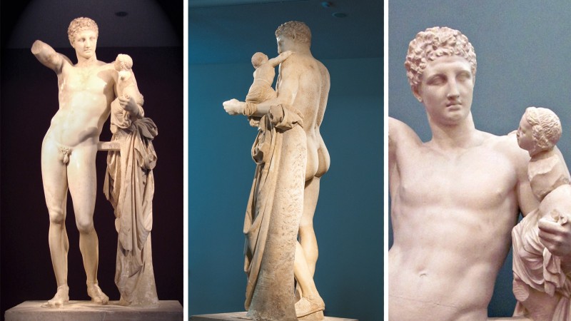 Грекийн Олимпия дахь эртний мөргөлийн газарт байх Херагийн сүмийн тууриас 1877 онд олдсон энэ баримал өдгөө Олимпиягийн Археологийн музейд хадгалагдаж байна. Уг бүтээлийг МЭӨ IV зууны үед амьдарч асан Пракситель хэмээх уран барималч урласан гэдэг ч сүүлийн үед энэ таамгийг няцаах түүхч, судлаачид олширчээ. МЭ II зуунд Херагийн сүмд хөл тавьсан Павсаний хэмээх аялагчийн тэмдэглэлээс өөр энэ барималтай холбоотой ямар нэг бичгийн өв, баримт сэлт үгүй тул зөвхөн Павсанийн үгэнд итгэж болохгүй гэж урлагийн түүхчид үзэж буй аж.