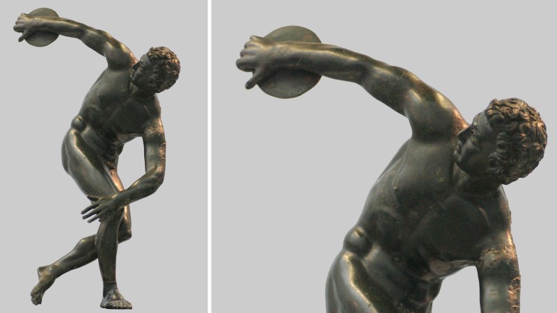 Өөрөөр “Дискобол” гэгддэг уг баримал эртний Грекийн сонгодог эриний түрүү үе буюу МЭӨ 460-450 оны орчим бүтээгдсэн хосгүй бүтээл юм. Гэвч энэ баримлыг хэн гэдэг алдар нэртэй уран барималч бүтээсэн нь, анхны эх загвар нь ямархуу хийцтэй байсан нь тодорхой бус. Орчин цагийн бид эртний Грекийн урлаг соёлыг бахдан биширсэн ром урчуудын хуулбараар л “Зээрэнцэг шидэгч”-тэй анх танилцсан билээ. Эртний Грекийн бүх л тамирчдын адил энэ эр ч мөн чармай нүцгэн юм.