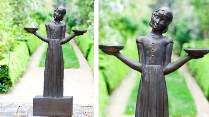 Америкийн Жоржия мужийн Саванна хотын Дүрслэх урлагийн музейд хадгалагдан буй энэхүү баримлын эх загварыг Иллинойс мужийн Лейк Форест хотын уугуул Сильвия Шоу Жадсон (1897-1978) 1936 онд гаргажээ. Тэрбээр нийт дөрвөн ижил баримал бүтээж, сүүлийнхийгээ Саванна хот руу шилжүүлсэн нь 1994 онд хэвлэгдсэн “Нүгэл, буяны цэцэрлэгт шөнө дунд” (Midnight in the Garden of Good and Evil) хэмээх романы хавтсан дээр гарч, анх алдаршсан байна. Хоёр гартаа шувууны үр будаа хийх таваг барин гунигтай зогсоо энэ охины баримал 130 см өндөр.