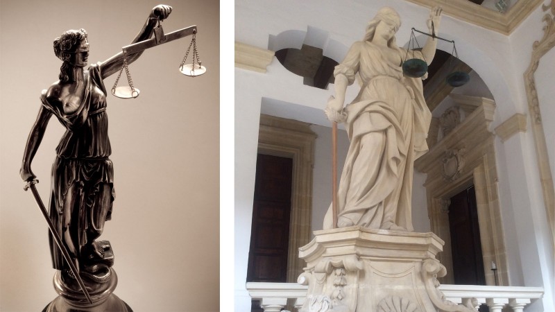 Дэлхий даяар танигдсан цөөхөн уран баримлын нэг Юстиция охин тэнгэрийн энэ дүр ганц уран барималчийн бүтээл биш, харин эртний Грек, Ромын үлгэр домог, шашин шүтлэгээс эхтэй, өнөөг хүртэл хэдэн мянган хувилбараар бүтээгдсээр буй баримал юм. Шударга ёс, эрхэт төр, хууль зүйн бэлгэдэл болох Юстиция (грекээр мөн Фемида гэнэ) гол төлөв нэг гартаа дэнс, нөгөө гартаа илд барин, нүдээ боолгосон байгаагаар дүрслэгддэг. Энэ нь өнгө мөнгөнд хуурталгүй, бүхнийг чин шударгаар дэнслэхийг бэлгэддэг байна.