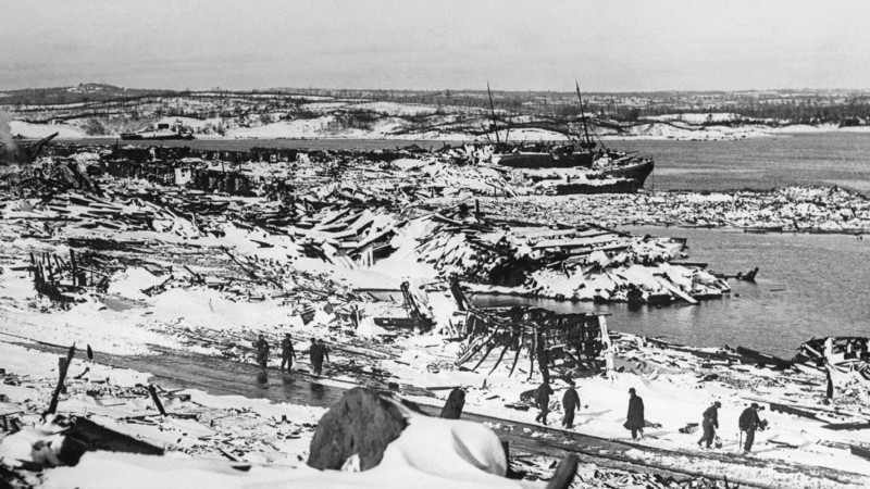 Дэлхийн I дайны үед буюу 1917 оны арванхоёрдугаар сард тулааны талбар дахь цэргүүддээ зэр зэвсэг, тэсрэгч хүргэхээр явсан Францын нэгэн хөлөг онгоц Канадын Халифакс боомтын ойролцоо Бельгийн хөлөг онгоцтой мөргөлдсөн нь тухайн үедээ хүний нөлөөгөөр болсон түүхэн дэх хамгийн хүчтэй, аймшигт дэлбэрэлт гэгдэж байв. TNT-ийн гурван килотонны хүчтэй байсан гэх уг дэлбэрэлтээс үүдсэн утаа тортог 6100 гаруй метр өндөрт дэгдсэн бол хүчтэй тэсрэлтийн улмаас бий болсон цунами 18 метрийн өндөрт хүрчээ. Хоёр орчим ам.км талбай эзэлсэн гамшгийн уршгаар 2000 гаруй хүн нас барж, 9000 орчим хүн шархадсан байна. Мөн боомтын ойролцоох олон арван байшин барилга сүйджээ. Уг ослыг хөлөг онгоцтой холбоотой түүхэн дэх хамгийн хүчтэй дэлбэрэлт, хамгийн том осол гэдэг.