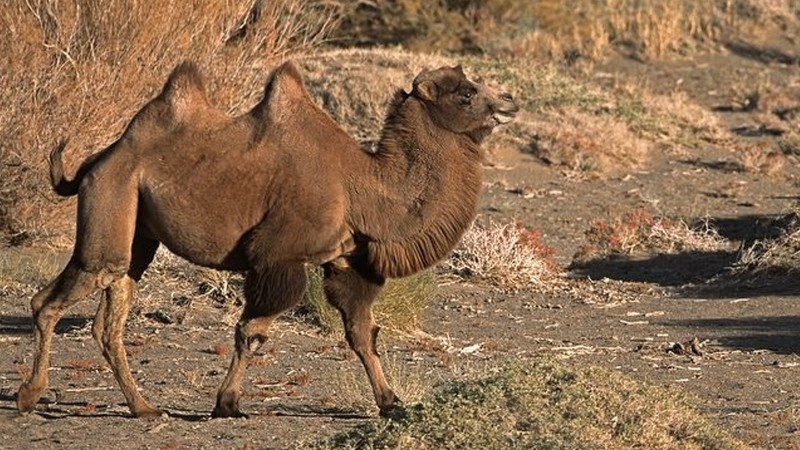 Зүс нь гэрийн тэмээнийхээс цайвар, элсэн шаргалаас хүрэн улаан.