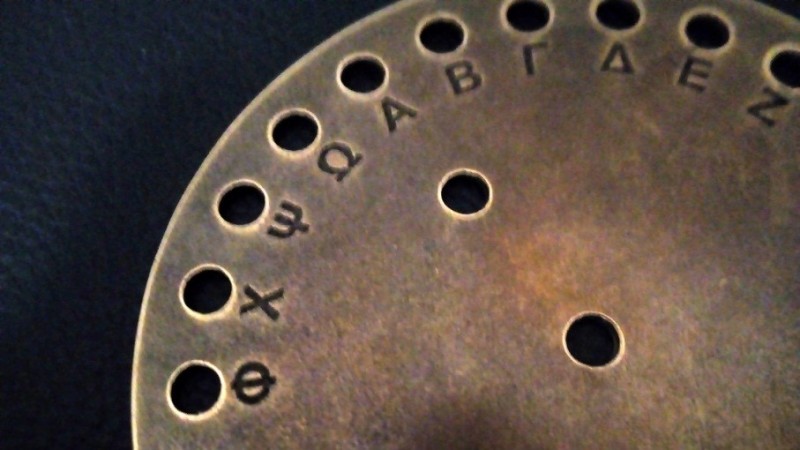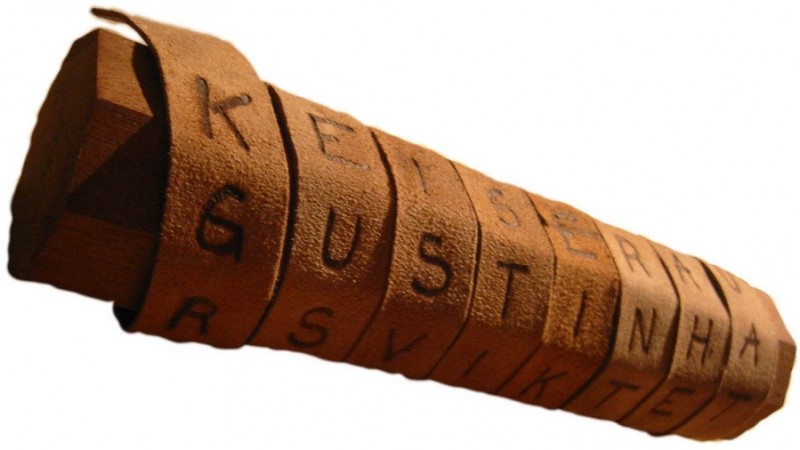 Эрт дээр үеэс цэргийнхний ашигладаг байсан криптографикийн нэгэн багаж бол дээрх зурагт буй зүйл юм. Үүнийг “scytale” гэх бөгөөд Христийн тооллоос өмнөх тавдугаар зууны үед Спартачууд ашиглаж байжээ. Хэрэглэх арга нь их энгийн. Зурагт харагдаж буй, ийм хэлбэртэй модыг илгэн цаас эсвэл арьсаар ороогоод дээр нь дамжуулах гэж буй захидлаа мөр дагуулан бичнэ. Дараа нь арьсыг модноос салгаж аваад бичгийг нь дотогш харуулан бүс мэт зүүж болдог. Хэн нэгэн нь харлаа ч гэсэн ойлгоход хэцүү үсгийн цуглуулганууд үзэгдэнэ. Ийм нууцлалын гол түлхүүр нь захидал илгээгч болон хүлээн авагч хоёр адилхан диаметртэй мод ашиглахад оршдог ажээ.