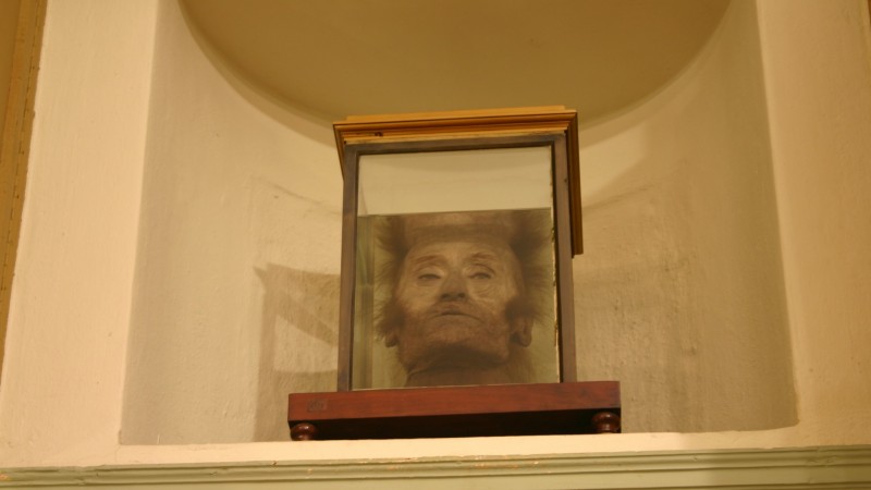 Бентхамын толгойг музейн үзмэр болгон тавьдаг байсан бөгөөд 1990 оны сүүл үед нэгэн оюутан хулгайлах хүртэл хөргөгчинд хадгалж байжээ.