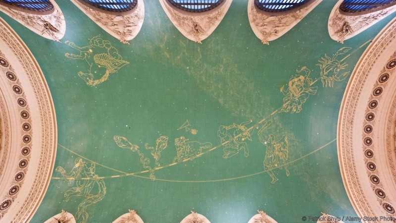 12 ордны тэмдэг бүхий уг таазыг нисэх буудлаар үйлчлүүлэх мянга мянган зорчигчдын тамхины утаанаас ялгарах никотины бохь бүрхэн зузаан бүрхүүл тогтож, дээрх зураг нь харагдахгүй болсон байжээ. Таазыг дундад зууны үеийн одон орны газрын зурагнаас санаа авч хийжээ. Таазыг 1998 онд цэвэрлэж, сэргээсэн байна.