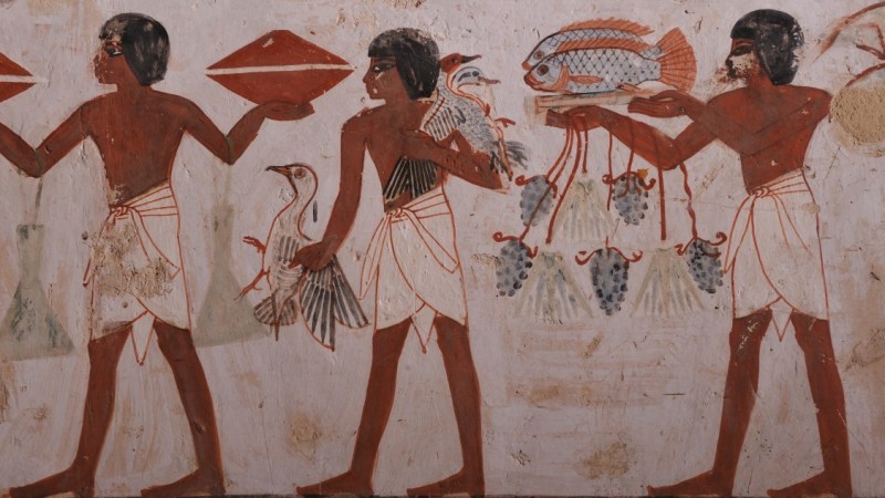 Эртний өндөр соёлт тэр ард түмэн өдөр тутмын хүнсэндээ чухам юу хэрэглэдэг байсан бол? Ямартай ч тухайн үед зэрэгцэн оршин тогтнож байсан бусад улс үндэстнүүдээсээ хавьгүй илүү зүйл хүнсэндээ хэрэглэдэг байсан бололтой. Египтийн эртний бунханы ханан дээрх зураг, бичээсүүд, булшнаас олдсон таваг зэргээс бид тэдний хоол хүнсний тухай зарим зүйлсийг мэдэх боломжтой. Маш олон бунханы зурганд тариа тарьж, ан хийж, загас барьж буй хүмүүсийг дүрсэлсэн байдаг.