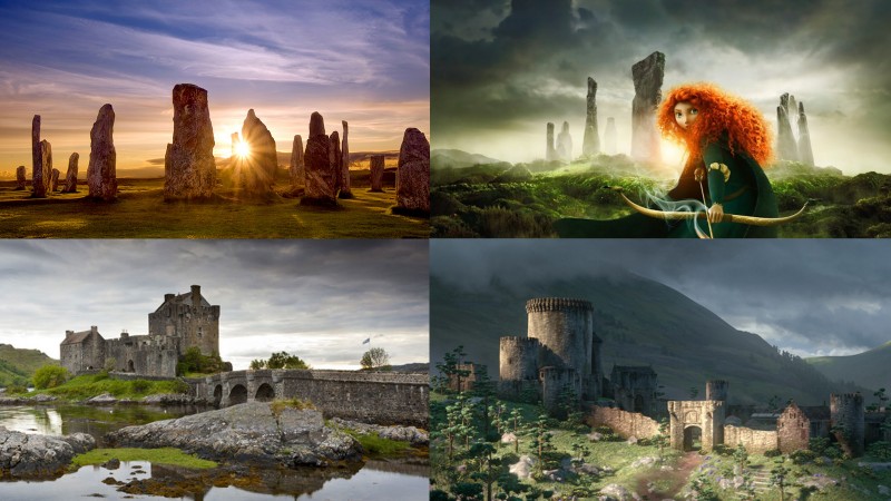Улаан үстэй, зөрүүд гүнжийн тухай гардаг кинонд маань Калланишаас гадна Диснейн уран бүтээлчид Шотландын маш олон зүйлсийг ашигласан байдаг. Цайз, ой шугуй, нуур, байгаль, хувцас, гэх мэт. Жишээ нь алдарт Лох Несс нуурын эрэг дээр байдаг Urquhart цайз, мөн Dunnotar цайзаас санаа аван хүүхэлдэйн кинон дээр гардаг DunBroch цайзыг дүрсэлсэн бол гүнжийн ордны доторх тансаг заслыг Шотландын баруун эрэгт байдаг, 13-р зууны үеийн Элеан Донан гэдэг цамхгаас санаа авч дүрсэлжээ.