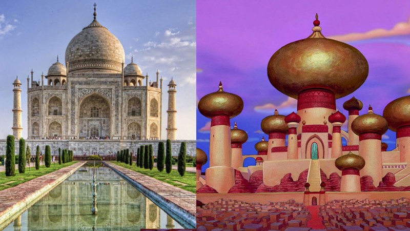 Энэтхэгийн Агра хотод байдаг Таж Махал бунханыг Их Моголын хаан Шах Жахан хайрт эхнэрийнхээ дурсгалд зориулан барьсан билээ. Аладдин хүүхэлдэйн кинон дээр гардаг султан хааны тансаг ордныг Таж Махалаас санаа аван дүрсэлжээ. Түүнчлэн хүүхэлдэйн кинон дээр султанд хатан байдаггүй бөгөөд Жасмин гүнжийн хувьд ордон нь эрх чөлөөг нь хязгаарлах шорон шиг санагддаг тухай гардаг.
