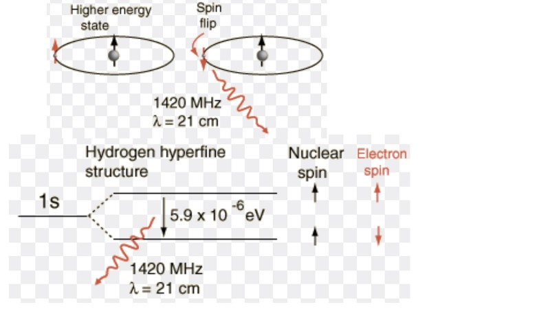 Харин мэдэхгүй зүйл бол: Устөрөгчийн атомын электроны хамгийн бага энергийн төлөв хоёр салангид төлөвөөс тогтдог. Эдгээр төлөвүүд нь электроны спин цөмийн спинтэй нэг чиглэлд эсвэл эсрэг чиглэлд байрласан байх тохиолдлоос хамааран тодорхойлогдоно. Өөрөөр хэлбэл электроны спин цөмийн спинтэй ижил дээш чиглэлтэй байх, эсвэл харилцан эсрэг чиглэлд чиглэсэн байх хамгийн бага энергийн хоёр төлөв байх юм.