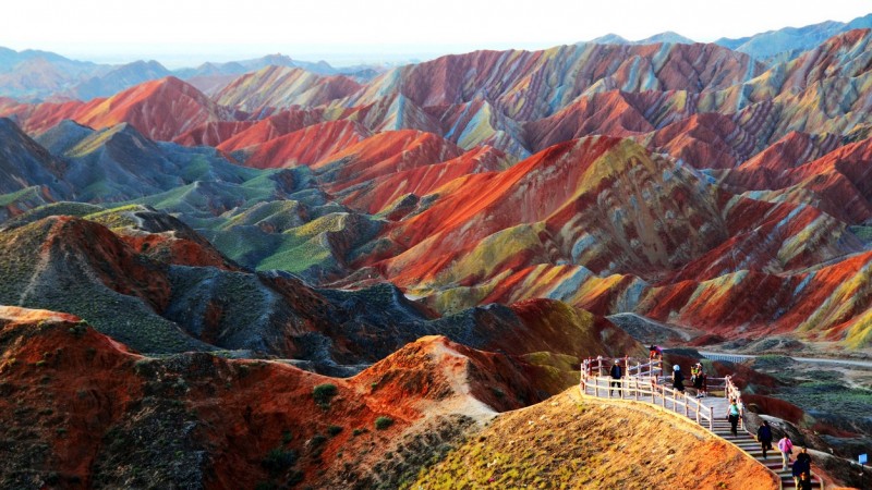 БНХАУ-ын хойд хэсэгт орших Ганьсу муж байгалийн өвөрмөц тогтоцоороо сая сая жуулчдыг татаж байдаг. Торгоны замын нэгээхэн хэсэг болох энэ бүс нутгийн хамгийн алдартай зүйл нь Солонгон уулс юм. Мужийн төвөөс ердөө гуравхан цагийн зайд орших энэхүү үзэсгэлэнт уулсыг үзэх бол зун цагийг тааруулах хэрэгтэй. Ялангуяа борооны дараа, нар жаргах үеийг тааруулж очиход бороонд норсон элс, чулуу нь илүү тод сайхан харагддаг юм.