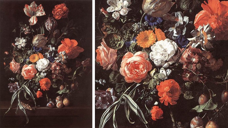 1704 он, "Still-Life with Bouquet of Flowers and Plums"