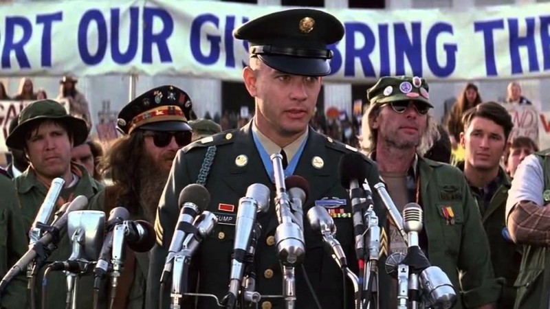Форрест Гамп кино бол мартагдахааргүй, ач холбогдолтой хэсгүүдээр дүүрэн. Тэдний нэг нь Вашингтон хотод жуулчилж байсан Форрест дайны эсрэг тэмцэгчидтэй тааран, санамсаргүйгээр индэр дээр гарах болдог. Гэвч микрофоны залгуурыг салгаснаас болж хуран цугларсан мянга мянган хүний өмнө түүний хэлсэн үгийг хэн ч сонсож чаддаггүй. Форрест үнэхээр үг хэлсэн ба энэ нь “Заримдаа хүмүүс Вьетнам явсныхаа дараа ээж дээрээ эргэж ирэхдээ хөлгүй болсон байдаг. Заримдаа тэд гэртээ огт ирдэггүй. Энэ бол муу зүйл. Энэ талаар хэлэх зүйл минь энэ л байна” гэж хэлсэн аж.