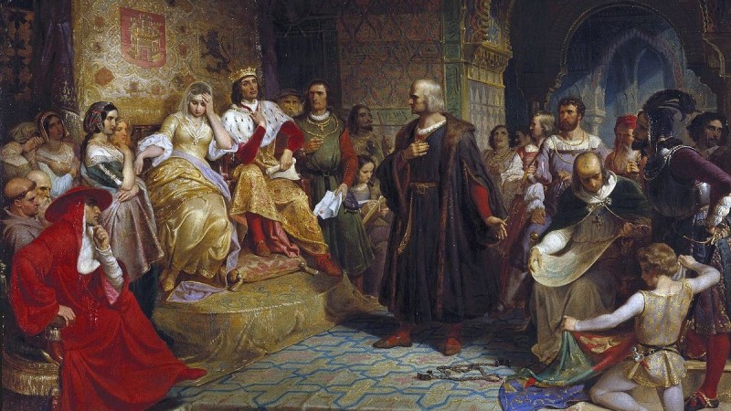 Тэр үед буюу 1479 онд Испанийн эзэнт гүрэнд загалмайтны шашинт хоёр ханлиг ураг барилдан байж төрийн эрхийг гартаа аваад, 700 жилийн турш нутаг оронд нь ноёрхсон арабчуудыг хөөн явуулах их ажил эхлүүлээд байлаа. Тэд Колумбын төлөвлөгөөг сайшаагаагүйн дээр түүнийг Саламанкагийн их сургуулийн багш, эрдэмтдэд даатган орхижээ. Сургуулийн байраар бүтэн дөрвөн жил эргэлдсэн ч Колумб мөнөөх багш нараас нааштай хариу сонссонгүй. Чингээд Францад очихоор Испаниас явахаар завдаж байтал Кастилийн Изабелла хатны итгэлт хуврагтай тааралджээ. Тэр нь Колумбын санааг ихэд тоож, далайчны хүсэлтийг биелүүлэх боломж бий, эсэхийг дахин тунгааж үзнэ үү хэмээн хатандаа уламжилсан байна. Энэ удаад Колумб боломжоо бас л алдах дөхөж. Учир нь тэрбээр аялал нь амжилттай болбол их шан харамж хүртэж, нээн илрүүлэх бүх л шинэ газартаа хааны итгэмжит төлөөлөгч буюу ван хэргэмтэн болж, нутгийн иргэдээс хураах бүх татварын аравны нэг хувийг өөртөө авна гэх зэрэг болзол тавьсан байна. Испанийн хаан, хатан хоёр итали аялагчийн саналыг хүлээж авсангүй. Харин шинээр нээх газруудаа Францын эзэмшил болгоно хэмээн Колумбыг Франц руу явах болоход бууж өгч, хүсэлтийг нь биелүүлэхээр болжээ. Ингэж Колумб Испанийн хаант төрийн далбаатай хоёр хөлөг онгоцтой болж, гурав дахийг нь өөрөө түрээслэв.