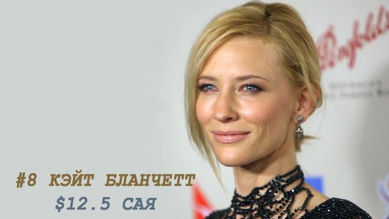 Оскарын 2 удаагийн шагналт Австрали гаралтай жүжигчин Кэйт Бланчетт 1 жилийн хугацаанд 12.5 сая доллараар түрийвчээ зузаатгажээ. Түүний тоглосон "Thor: Ragnarok", "Ocean's Eight" кинонууд нь Бокс Оффист тун сайн өрсөлдсөн нь алдартныг ийм хэмжээний орлого олоход нөлөөлсөн нь дамжиггүй.