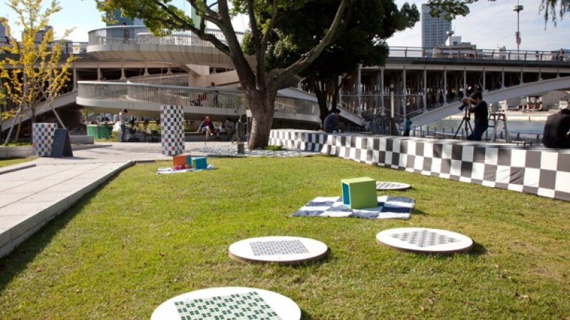 Осака хотын нэгэн эргийг дан шатрын хөлөг маягаар тохижуулжээ. Тэнгисийн эрэг